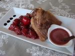 1 magret de canard, 250g de cerises, 30g de miel, 10g de vinaigre de xéres, 2 poivres long, sel, poivre.