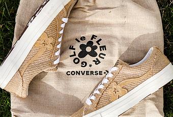 Tyler, The Creator et Converse continuent leur aventure commune autour de cette fameuse silhouette One Star ornée de la fleur identitaire de Tyler. Dernier concept en date, trois modèles travaillés à partir de toile de jute dont cette Golf Le Fleur x Converse One Star Burlap.
