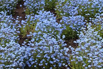 Le myosotis des jardins (Myosotis) est un couvre-sol aux petites fleurs bleues, qui peut aussi devenir très envahissant du fait de sa facilité à se ressemer. On l’appelle communément parfois oreille-de-souris (sens du mot myosotis en grec) du fait de ses feuilles arrondies et velues, mais aussi grémillet, scorpione, herbe d’amour.