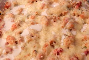 Verser quelques filets de crème sur le gratin. Finir par une couche de fromage râpé.