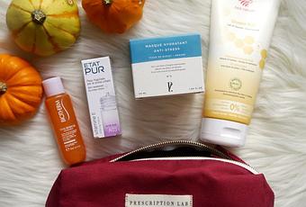 A l’intérieur de cet adorable vanity Gabrielle Paris X Prescription Lab (en novembre, la box s’offre un nouveau design ultra cool, et en plus ils ont même poussé le truc jusqu’à rendre l’intérieur étanche grâce à une couche de plastique, on peut presque se faire plaisir et pousser le vice jusqu’à oublier de fermer nos flacons pour tester la résistance de tout ça… Ou pas, ça serait tellement dommage de l’abimer !) on trouve :