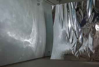 Dans cette installation pluridisciplinaire, l'eau, troublée d'un nuage