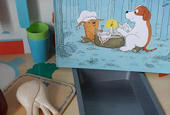 Aujourd'hui Zaza a une super idée : les toutous vont ouvrir leur restaurant dans la forêt ! Super bonne idée me direz-vous et tout le monde se met au travail. Zaza répartit les tâches : Jane est chargée des menus, Kaki s'occupe de peindre l'enseigne et Popov construit des tables. A l'heure du dîner, tout est prêt ! Enfin presque tout...