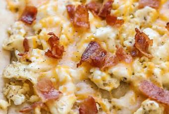 Pizza au bacon et fromage, un délice pour votre déjeuner du weekend.