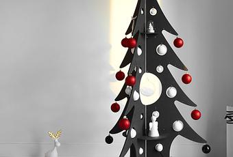 Les sapins traditionnels commencent à se faire la malle en effet chacun n’a pas l’envie d’un sapin vert en synthétique .. De plus les réels sapins ont l’inconvénients de ne pas tenir très longtemps, pas idéale pour ceux qui aiment avoir un sapin dés le mois de mi novembre. C’est pourquoi les sapins plus recherchés et plus insolites sont de plus en plus présents. Comme ce sapin en bois, qui propose un concept différent de la décoration d’un sapin de Noël. Des planches de bois, quatre précisément découpées en forme de sapin, et laissant des espaces géométriques, afin de pouvoir y poser des décoration, sur tout le long du sapin se trouvent aussi de petits trous, permettant d’accrocher la encore de nombreuses décorations des pendentifs telle une boule ou bien une étoile de Noëls. Tout est penser pour que le sapin en bois puisse mettre en valeurs vos décorations mais aussi apporter un effet très graphique à votre salon, sans jamais oublier la féerie de Noël.