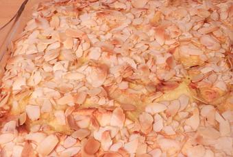 Y déposer délicatement les framboises. Disposer ensuite les pommes et les amandes effilées.