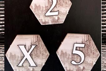 Le Centre-Ville est entouré de 6 quartiers placés au hasard. Pour une partie à 2 joueurs vous devrez retourner les quartiers situés au-dessus et en dessous du centre ville : ils sont détruits. Les marqueurs des Tuiles quartiers sont eux aussi placés au hasard en partant du quartier en haut à droite puis placés dans le sens horaire. Les marqueurs frappés d’un X sont retirés. Ils vous permettent de repérer les Quartiers indiqués par certaines cartes notamment les cartes Évènement.