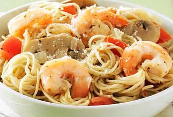 Spaghetti champignons et crevettes au cookeo, un plat de pâtes aux crevettes pour votre repas ce soir.