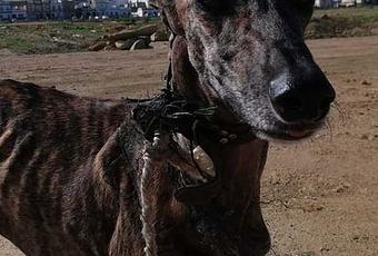 Adoptez Pénélope environ 1an, une galga levrier martyrisée et pendue .