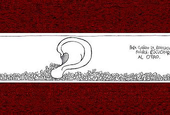 A Macron ou à toutes les autorités du G20 présentes à Buenos Aires… mais, bon, quand on connaît la situation des gilets jaunes en France (et en Belgique, où c’est le même remue-ménage, avec les mêmes slogans contre le gouvernement Michel), on a vraiment l’impression que le dessinateur et peintre argentin (de gauche et de presse) Miguel Rep (Página/12), nous parle, à nous. Un message à Macron ? Peut-être ! Après tout, il est à Buenos Aires [Actu]
