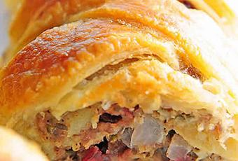 une recette de comment faire le feuilleté tressé aux pommes et saucisses si simple et facile.