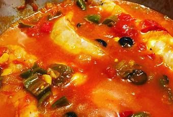 dans une cocotte faire revenir l'oignon émincé avec les piments doux des Landes à feux doux sans que cela prenne coloration environ 10 mn, ajouter l'ail et la boîte de tomates pelées, sel (pas trop la morue reste salée), poivre et le Piment d'Espelette ou la poudre, couvrir et laisser mijoter 30mn, au bout de ce temps ajouter les olives et déposer les filets de morue, les laisser pocher une dizaine de minutes, + ou - selon la grosseur des filets, il ne faut pas trop les cuire ils dessècheraient... c'est le secret pour obtenir un poisson moelleux.