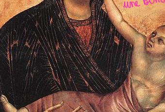 Dans les icônes chrétiennes, ce que l’on pourrait interpréter comme de la tendresse entre une mère et son enfant, est en fait de l’esbroufe. Les théologiens ont pioché dans le cantique des cantiques cette phrase : Sa main gauche est sous ma tête et sa main droite m’embrassera. Le vioque Jésus bébé incarne donc le divin qui embrasse l’âme (ici la Vierge) et non pas un bambin en manque de bisous.
