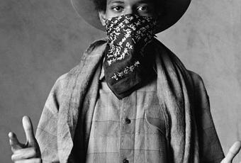 Le photographe Yutaka Sakano à l’origine de ces photos a orchestré cette séance lors de la première venue de Basquiat au Japon. Destiné à Danse un magazine mode des années 80, on y retrouve l’artiste dans un style cow-boy composé de pièces d’Issey Miyake, l’un des designers majeurs japonais au même titre que Yohji Yamamoto ou Rei Kawakubo. Une complicité ressort à travers ces images, bien que les deux hommes ne parlaient absolument pas la même langue. Le côté candide et joueur de Basquiat le rend touchant, d’autant plus quand on connaît son destin funeste.