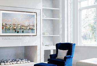 The Frame de Samsung est un téléviseur UHD 4K qui s’intègre dans un cadre mural de faible épaisseur. Un design qui permet de rendre discret votre téléviseur, mais aussi d’utiliser l’écran en permanence en le transformant en cadre quand vous ne regardez pas un programme.