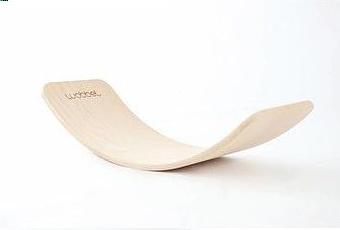 Le wobbel. Une planche en bois incurvé, très solide permet de jouer de manière multiple ou de se balancer, se reposer, se cacher...
