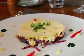 Le chef, ayant bien conscience que ses clients ne pouvaient pas mener grand train midi et soir, a songé à quelques suggestions " détox " mais néanmoins gourmandes comme la rémoulade de betterave façon mimosa et son caramel de Xérès ou en plat le poisson de rivière sauce vierge aux algues et capucine.