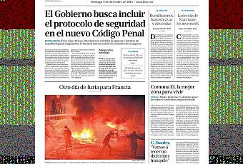 Les trois journaux de droite argentin ont mis les émeutes du pillage qui ont eu lieu hier, sur les Champs Elysées, sur leur une. Pourtant, la violence a été nettement mieux contrôlée et réprimée que la semaine dernière.