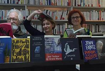 La semaine dernière, la librairie a accueilli Estelle-Sarah Bulle, Denis Donikian, Angel de la Calle et son éditeur OTIUM, et Stéphanie Demasse-Pottier. Des lectures ont été organisées sur la terrasse de la Brasserie de l'Hôtel de Ville, voisine de la librairie. C'est ce dont témoignent les photos qui accompagnent cet article, que vous pouvez, bien sûr, relayer.