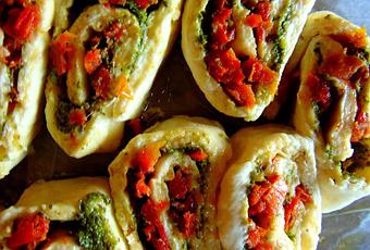 - couverte de pesto et de tomates séchées (dans l'huile)...