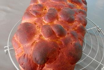 C'est le façonnage qui m'a intéressée en fait. Je trouvais ça "mignon". Elle lui a donné le nom de "brioche émiettée", tout simplement parce qu'on détaille le pâton obtenu en petits bouts que l'on place les uns à côté des autres.