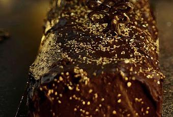 Coupez les extrémités pour qu'elles soient bien nettes . Étalez le reste de la ganache sur le gâteau , les côtés , le dessus ... Avec une spatule ou un couteau , formez des dessins dans la ganache .