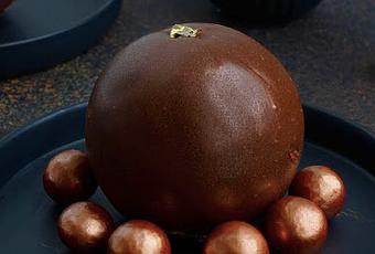 Elle se compose d'une mousse très délicate parfumée à la noisette , légère et à peine sucrée , un régal et d'un coeur de praliné et d'une base moelleuse de biscuit à la noisette . Pour le glaçage il utilise un mélange de chocolat et de beurre de cacao , cela donne une coque craquante c'est très bon et moins compliqué à faire qu'un glaçage .