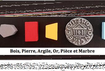 Architectes a un petit côté Age de Pierre boosté et recontextualisé avec de l’originalité, sinon à quoi bon. On retrouve bien entendu la récupération de matières premières : Bois, Pierre, Argile, Or, Pièce. Vous pourrez échanger ces ressources contre de la Vertu ou une autre ressource : Le Marbre.