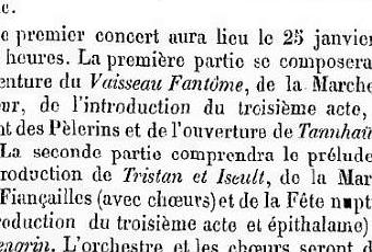 Coupure de presse de l'Europe artiste. Annonce du programme du concert 25 janvier 1860 au Théâtre-Italien à Paris : Wagner y dirigea ses propres oeuvres.