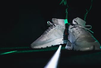 Ce nom de modèle parlera peut-être à quelques fins connaisseurs de la marque Allemande. La Nite Jogger est à l’origine une petite running sortie en 1979 et tire son nom de ses bandes réfléchissantes qui permettaient d’être vu pendant les run de nuit. La nouvelle version de cette adidas Nite Jogger n’a en réalité pas grand-chose à voir avec la paire originale, mais conserve ce même souci de visibilité dans l’obscurité. La paire ressemble à une nouvelle version de la Iniki avec une empeigne plus souple construite à partir de tissu ripstop sur une unité Boost classique. Ce coloris est aussi efficace que le premier et présente une simple association de gris et d’orange.