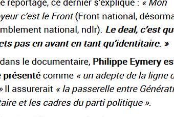 P.S. Et selon le journaliste qui a infiltré Génération identitaire à Lille, Philippe Eymery n’est pas le seul cadre du FN/RN a entretenir des relations étroites avec ces nazillons…