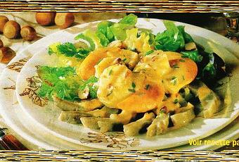 Nappez de vinaigrette bouillante, puis parsemez de noisettes et de ciboulette ciselée.