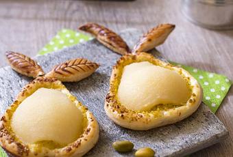 - Retirez les poires et posez les 6 feuilletés sur une plaque allant au four recouverte de papier cuisson.