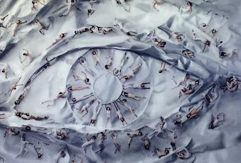 À la Maison Européenne de la Photographie, à Paris, les photos de JR nous invitent à entrer dedans. Un bateau rempli de passagers à Marseille : JR n’en est pas l’auteur mais il a conçu pour son exposition une présentation telle qu’on ne voit la photo entière que sous un seul angle et qu’on la traverse pour aller dans l’espace suivant.