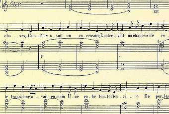 Trois anges sont venus ce soir M'apporter de bien belles choses. L'un d'eux avait un encensoir, L'autre avait un chapeau de roses, Et le troisième avait en main Une robe toute fleurie De perles d'or et de jasmin Comme en a Madame Marie.
