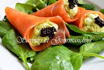 Il n’y a pas de fêtes de fin d’année sans saumon fumé. Pour changer un peu des blinis au saumon fumé et crème aigre, je vous propose des cornets de saumon fumé farcis de mousse d’avocat.Il est bon de relever la crème pour fouetter les papilles mais la quantité des épices est en fonction des goûts de chacun.Pour pouvoir tout préparer à l’avance et donner de la tenue à la mousse, j’ai rajouté de la gélatine.Je l’ai testée, la veille pour le lendemain : aucun problème.Cette entrée est rapide et facile à préparer.Selon le nombre de convives, ces cornets peuvent être servis en entrée ou comme amuse-bouches s'ils sont préparés en version mini. Très belle fête de fin d'année à vous tous et à l'année prochaine. La suite de la recette : cliquez ici