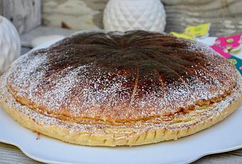 Une dizaine de minutes avant la fin de la cuisson, saupoudrer de sucre glace et remettre au four pour obtenir une galette bien brillante.