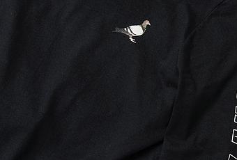 Alors que les précédents modèles conservaient une allure sombre, basée sur une palette dominée par le gris et le noir, la nouvelle version dévoilée insère une teinte de vert qui marque une évolution dans le visuel de la Pigeon Dunk Low. Cette nuance de vert est donc logiquement retrouvée dans la partie clothing. Pour le moment ce micro vestiaire semble composé d’un hoody vert assez basique, orné du célèbre logo Pigeon de Jeff Staple ainsi que de celui de la gamme Nike SB. Le branding semble de mise puisque les autres détails concernent les manches présentent un lettrage STAPLE et un triple Swoosh. Le même concept est appliqué à deux t-shirts, l’un vert l’autre noir. Rien de particulièrement surprenant côté design mais une série d’items basiques fidèles aux codes à succès streetwear qui laisse l’attention majeure portée sur le nouveau modèle sneaker de Jeff Staple. Pour le moment pas d’autre information concernant la release de la Pigeon Dunk Low si ce n’est qu’elle sera accompagnée de ces quelques pièces clothing.