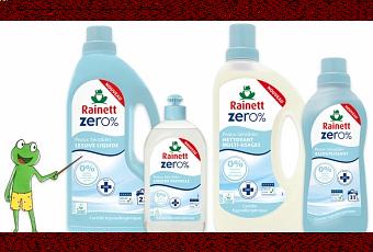 Lessive, assouplissant, liquide vaisselle ou encore nettoyant multi-usages, la marque Rainett a lancé la gamme anti-allergènes "Zéro%" dédiée aux peaux très sensibles (dites atopiques) pour limiter les risques d'irritations de la peau. La gamme bénéficie du label ECARF, décerné par l'European Centre for Allergy Research Foundation, qui permet d'aider les personnes qui souffrent d'allergies à mieux sélectionner les produits qu'ils utilisent. Ces produits hypoallergéniques sont également écolabellisés. Leurs formules comprend des agents lavants (tensioactifs) d'origine végétale (citron, vinaigre, orange sanguine,aloe vera,...) et aucun ingrédient d'origine animale, ni allergènes, ni parfum, ni colorants, ni phosphates ni phtalates. Et ils n'ont pas été testés sur les animaux !