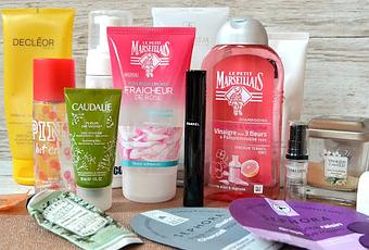 Gommages corpsGommage 1000 Grains DECLEORVous avez déjà vu ce gommage sur mon blog et pour cause : je l'ai adoré ! Il a une odeur fruité très agréable et les grains de tailles différentes (noyaux abricot, ...) gomment super bien la peau. Au contact de l'eau il se transforme même en un lait léger et doux. Je rachète ? Je le garde dans un coin de ma tête oui mais pour l'instant j'ai du stock !Gommage Ritual of Sakura RITUALSAutre gommage que j'adore et que j'ai économisé sous la douche avec celui-ci de chez Rituals au lait de riz et fleur de cerisier. L'odeur délicate est très agréable et les grains sont nombreux pour bien gommer la peau. Seule la texture un peu épaisse a du mal à sortir du tube.Je rachète ? Oui mais pareil, une fois que j'aurai écoulé mon stock.MaquillageBase paupières BONNIE CHOICEReçue de la part du site chinois Born Pretty Store, cette base à paupières liquide était pas trop mal. Pour son prix riquiqui de quelques euros elle faisait bien tenir mes fards, la texture un peu gélifiée séchait vite sur la peau donc il fallait juste être rapide.Je rachète ? Je ne pense pas recommander de suite sur le site mais elle est bien.Mascara Le Volume Waterproof CHANELCe produit est un chouchou ! Je suis fan de sa brosse en picots plastiques qui attrapent très bien les cils et c'est un vrai waterproof qui tient très bien la courbure avec un fini bien noir. Quel dommage qu'il soit si cher...Je rachète ? Oui très certainement, je vais attendre une promo !Autres soins et bougie