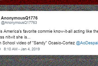 « Et voici le vrai visage de la nouvelle communiste favorite de l’Amérique, Madame je sais tout, en réalité juste une petite idiote décérébrée… »