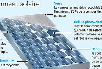 Un panneau solaire est composé à 75 % de verre, une matière recyclable à l’infini, tout comme l’aluminium qui compose son cadre.
