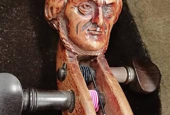 On trouve parfois des violons dont le sommet du manche (sa tête, généralement en forme de volute) est en forme de tête figurative sculptée d'homme, de femme, d'angelot, d'animal, lion, chat, lièvre, cheval, oiseau, tête de Christ couronnée d'épines, chimère, tête de mort, .... (l'énumération n'est pas exhaustive).