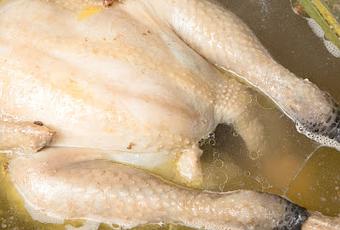 A mi-cuisson, quand la chair du poulet est tendre, vous pouvez enlever la chair et remettez les os à cuire dans le bouillon.