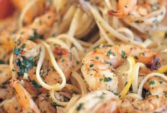 Pâtes linguine aux crevettes , un délicieux plat de pâtes au fruit de mer pour votre dîner.