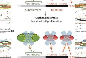 L’intégrité de la chromatine associée aux régions télomériques, qui incluent les télomères et les subtélomères, est essentielle à la fonction des télomères et de la viabilité cellulaire. Alors que les subtélomères humains sont hétérochromatiques, les télomères sont étiquetés par des régions euchromatiques comme HK20me1 et H3K27ac dans la plupart des lignées cellulaires communément étudiées. Les marques épigénétiques des régions télomériques humaines agissent sur les processus oncogéniques. En effet, différents médicaments qui font baisser les taux au niveau du génome entier sont actuellement utilisés ou testés comme thérapies spécifiques contre le cancer. Ces médicaments défient le cancer en altérant la fonction des protéines cellulaires clé. Cependant, ils pourraient avoir aussi pour effet d'entraver les processus oncogéniques en modifiant le paysage épigénétique des régions télomériques. Nous pensons que les études sur la structure de la chromatine télomérique et sur le dysfonctionnement des télomères devrait aider à la mise au point de thérapies épigénétiques pour le traitement du cancer. Maria Isabel Vaquero-Sedas, et Miguel Àngel Vega-Palas, dans Trends in Cell Biology, publication en ligne en avant-première, 16 janvier 2019Source iconographique, légendaire et rédactionnelle : Science Direct / Traduction et adaptation : NZ