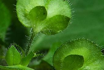 Veronica : feuilles opposées ; fleurs à 2 étamines, corolle à tube court et 4 lobes plus ou moins étalés, lobe supérieur plus large que les autres (fusion de 2 pétales), lobe inférieur plus étroit, calice généralement à 4 sépales. Veronica montana (Véronique des montagnes) : tige velue, ± étalée et radicante aux nœuds, à larges feuilles pétiolées et dentées ; fleurs lilas en grappe axillaires lâches, fruits aplatis aux bords ciliés.