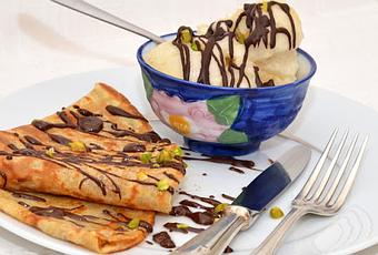 Aujourd'hui, je vous propose de simples crêpes nature, que j'ai accompagnées de glace et de chocolat.Pour une version plus light, j'ai opté pour un sorbet poires absolument délicieux.Vous pouvez mettre une boule de sorbet sur la crêpe ou servir le sorbet dans un récipient à part pour garder la crêpe chaude plus longtemps. J'ai aimé les 2.