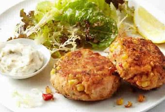 galette saumon et sauce tartare , un délicieux plat de dîner à base de poisson.
