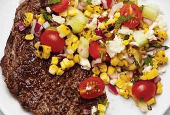 Steak grillé et salade de maïs , votre plat de dîner en moins de 20 minutes.